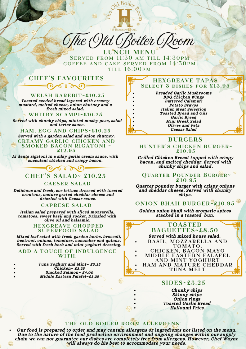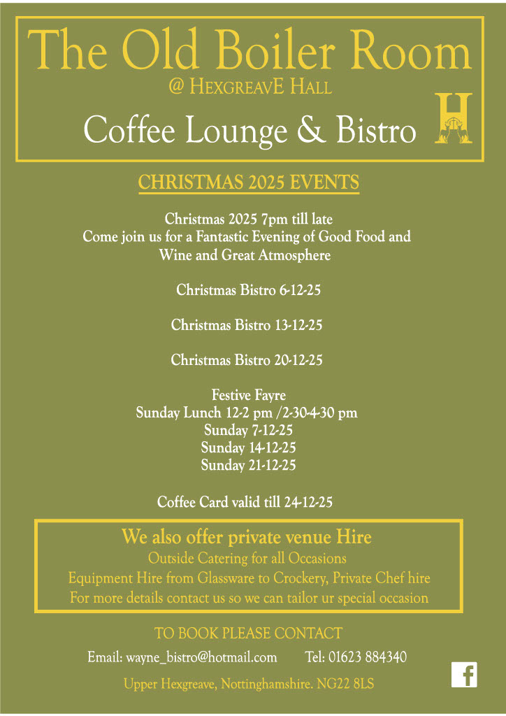Welcome to The Old Boiler Room | Coffee Lounge & Bistro, a charming retreat nestled in Hexgreave Hall, Upper Farnsfield. This delightful venue has quickly become a beloved local hotspot, perfect for both casual lunches and elegant evening dining experiences.